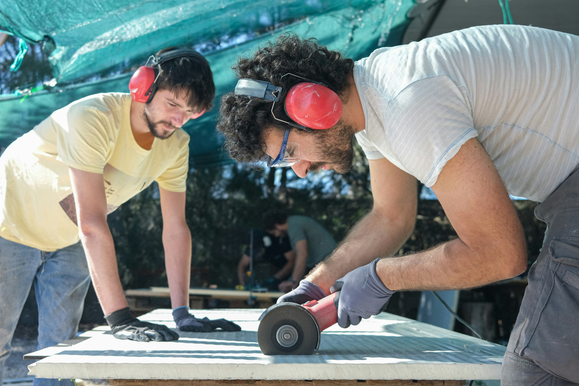 Ein spezieller 'Jobsite Awareness'-Modus ermöglicht es, Umgebungsgeräusche durchzulassen, während laute Geräusche automatisch gedämpft werden. Das System blockiert Geräusche über 85 dB und sorgt so für Komfort und Schutz.